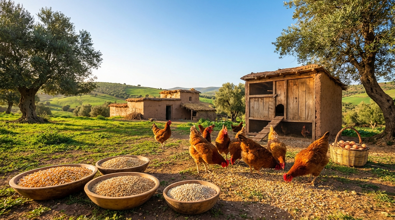 التغذية هي 70% من نجاح مشروع الدجاج البلدي. دجاج مغذي مزيان = بيض كثير + لحم مزيان + مرض قليل. ولكن بزاف ديال المربيين كيغلطو في التغذية — يا كيعطيو شوية بزاف يا كينقصو. فهاد المقال، غادي نعطيك برنامج علف كامل بالغرامات والدراهم.